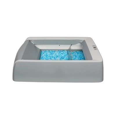 De Scoopfree Zelfreinigende Kattenbak Met Kap is een kattenbak dat zelfreinigend is en vocht absorbeert met kristallen kattenbakvulling. Met de Scoopfree Zelfreinigende kattenbak hoef je bijna geen zorgen meer te maken over het schoonmaken van de kattenbak. De hark beweegt uit zichzelf na de kat naar het toilet geweest is. Sensoren in de bak detecteren de aanwezigheid van jouw kat. Wanneer de kat de bak verlaat, gaat de knop van de hark blauw knipperen en start een timer van 20 minuten. Na 20 minuten zorgt de hark dat vaste uitwerpselen in de afvoer belanden. Vloeistoffen worden in de kristallen vulling geabsorbeerd. Wordt de bak binnen 20 minuten nog eens gebruikt? Dan wordt de timer gereset. Deze bak heeft een gezondheidsteller die telkens als de hark geactiveerd wordt, oploopt. De gezondheidsteller kan je resetten als je de kattenbaklade verschoont. De hark kan ook handmatig geactiveerd worden. De kristallen kattenbakvulling absorbeert het vocht uit de uitwerpselen om geurtjes onder controle te houden. Een hoge luchtvochtigheid kan ervoor zorgen dat de vulling sneller verzadigd raakt, wat de gebruiksduur beperkt. Zet de bak dus op een geventileerde plek. De kap zorgt voor meer privacy. Kattenbak sluit aan met een standaard stekker in het stopcontact. Bij een kitten de bak niet inpluggen en zelf de uitwerpselen uit de bak scheppen tot ze tenminste 6 maanden oud is.