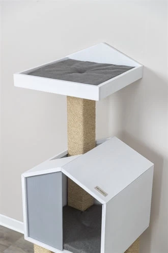 De Trixie Be Nordic Krabpaal Jonte Grijs/Wit 115 cm is een leuke krabpaal met twee ligplekken, beschut huisje en verschillende krabmogelijkheden. Deze krabpaal is een echte eyecatcher in huis! De paal geeft het gevoel van een strandhuisje, door het witte holletje op pootjes en een ligplankje. De poten en paal naar het plankje zijn omwikkeld met sisal, waar jouw kat naar hartenlust aan kan krabben. Op het ligplankje kan hij heerlijk dutten of overzicht houden wat er allemaal in huis gebeurt. Voor een goede nachtrust of meer beschutte powernap kan hij zich terugtrekken in het huisje. Zowel de plank als het huisje zijn voorzien van een comfortabel kussentje dat op de hand gewassen kan worden. Deze krabpaal is een echte must have in elk kattenhuishouden!