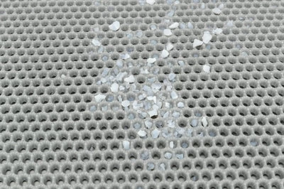 De Trixie Kattenbak Uitloopmat Eva Grijs van 55 x 40 cm is een handige opvangmat voor kattenbak die grind en grit in huis tegengaat. De mat is gemaakt van vormvast EVA in honinggraatmotief, wat zorgt dat het grind loskomt van de pootjes van de kat en wordt opgevangen terwijl het toch zacht is voor de pootjes. Dankzij het open-randen-design is de mat eenvoudig te reinigen. De boven- en onderlaag zijn verbonden met klittenband, wat het makkelijk maakt om de steentjes uit te schudden.