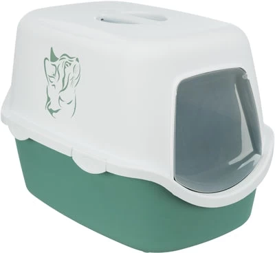 De Trixie Kattenbak Vico Groent / Wit 56 x 40 x 40 cm is een kunststof kattentoilet met kap, met Easy-Click sluitingen en leuk motief. Deze stijlvolle kattenbak van Trixie blinkt uit in functionaliteit. De Vico kattenbak is een kattentoilet met kap en deur, om de kat een beschermd gevoel te geven en nare geurtjes binnen te houden. De kap is met de Easy-Click sluitingen eenvoudig los te maken van de onderbak voor gemakkelijke reiniging. Het handvat aan de bovenkant maakt verplaatsen gemakkelijk. Van stevig kunststof en uitgevoerd met een leuke print op de bovenkap!