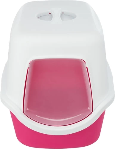 De Trixie Kattenbak Vico Roze / Wit van 56 x 40 x 40 cm is een kunststof kattenbak met bovenkap, klapdeur, handvat en leuke print. Een praktische bak die leuk staat in het interieur! Deze kattenbak is gemaakt van glad afgewerkt kunststof, dat gemakkelijk te reinigen is. De bak is voorzien van een bovenkant om het meeste grit en geurtjes binnen te houden, en is toegankelijk door een klapdeur aan de voorzijde. Door het geïntegreerde handvat en de easy-click sluitingen is de kattenbak praktisch in gebruik en gemakkelijk schoon te maken. Met leuke print aan de zijkant!