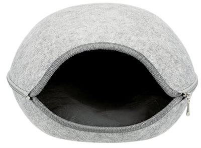 Zoek je een leuk, origineel mandje voor je kat? Dan is deze leuke Trixie Iglo Luna iets voor jou! In dit mandje zou je het liefst zelf gaan liggen. Dit gezellige kattenhuisje is een soort eitje met een gat dat toegang biedt voor de kat. Heerlijk veilig en knus slapen dus! Het huisje is gemaakt van vilt (polyester), wat er niet alleen leuk uitziet, maar er ook voor zorgt dat het huisje vormvast, isolerend en vuilafstotend is. Door de pluche bekleding is het heerlijk zacht slapen en het kussen met polyestervlies vulling zorgt ervoor dat het kattenhuisje supercomfortabel is. Ook heeft het mandje een ritssluiting rondom en kun je het gehele mandje in elkaar plaatsen en dus gemakkelijk opruimen. Een heerlijk, knus en zeer origineel mandje dus!