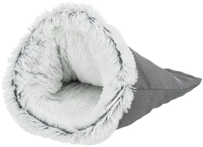 De Trixie Relax Slaapzak Harvey Grijs / Wit 60 x 50 cm is een slaapzak voor de kat of kleine kant, een mand om heerlijk in weg te kruipen bekleed met langhaar pluche en vormvast. Jouw hond of kat kan zich pas echt lekker verstoppen in deze heerlijke slaapzak van Trixie. De slaapzak Harvey is vormvast door de metalen ring en geeft jouw dier de mogelijkheid heerlijk in de zak weg te kruipen. Door de polyestervlies vulling en de bekleding van langhaar pluche en velourslook is de slaapzak extra comfortabel. De moderne kleurstelling zorgt ervoor dat deze slaapzak in elk interieur past!