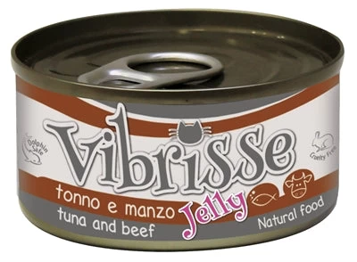 Vibrisse Cat Jelly Tonijn/Rund 24X70 gr is aanvullend natvoer voor de kat uit tonijn en rund in gelei, zonder toegevoegde kleur- en conserveringsmiddelen. Dit smakelijke voer bestaat uit geselecteerde delen van tonijn, rundvlees en rijst, heerlijk van smaak en niet verrijkt met kunstmatige toevoegingen. Omdat katten vaak de neiging hebben te weinig te drinken, draagt dit natvoer bij aan een gezonde, gelukkige kat.