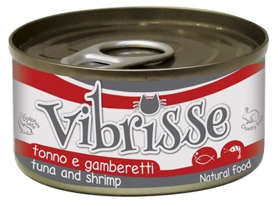 Vibrisse Cat Tonijn/Garnalen 24X70 gr is aanvullend natvoer voor de kat van tonijn en garnalen in vocht, zonder toegevoegde kleur- en conserveringsmiddelen. Dit smakelijke voer bestaat uit geselecteerde delen van tonijn en garnalen met rijst en water heerlijk van smaak en niet verrijkt met kunstmatige toevoegingen. Omdat katten vaak de neiging hebben te weinig te drinken, draagt dit natvoer bij aan een gezonde, gelukkige kat.